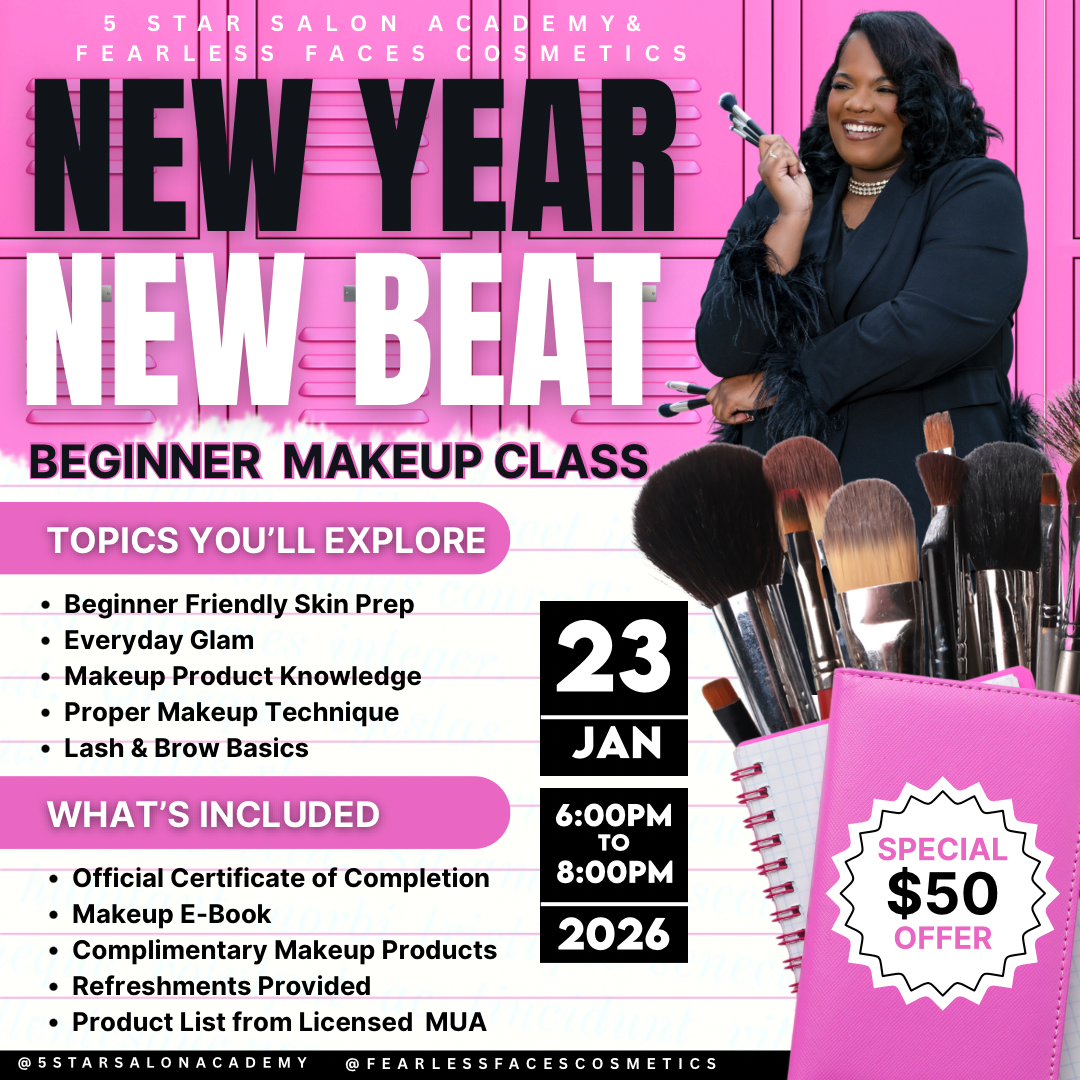 Hosted by 5 Star Salon Academy and featuring Master MUA & Educator Asiaonna Eley, this class will break down makeup in a simple, easy-to-understand way. You’ll learn step-by-step application techniques, how to choose the right products for your skin, and what essentials you actually need to purchase—no guesswork or overbuying.